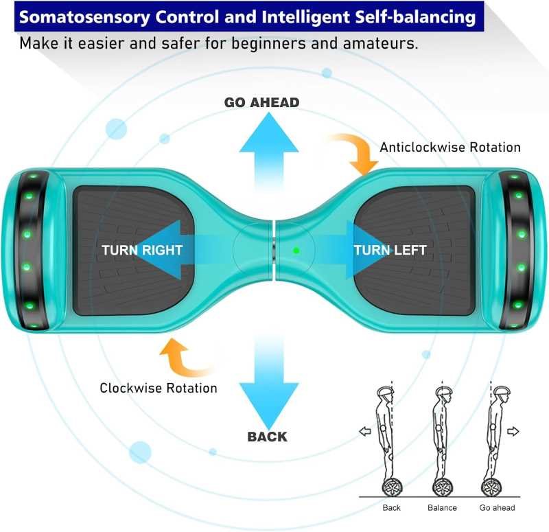 - Learn to Ride in 5 Minutes – Full of technology and easy to learn for beginners and amateurs, design emergency safety protection measures to limit the speed of self balancing scooter to ensure the safety of kids while they enjoy the fun of driving.